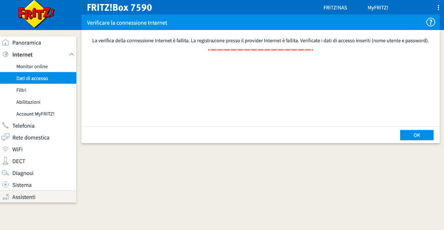 Ho dal 2017 una connessione FTTH con Tiscali (prima cliente ADSL) che ha sempre funzionato molto bene. Ho deciso di acquistare il Modem/router Fritz 7590 per migliorare il wifi e per le funzioni che offre. Sto provando a collegarlo per utilizzarlo anche come modem , ma non riesco a collegarmi. Vi chiedo un aiuto nel caso sbagliassi qualcosa.