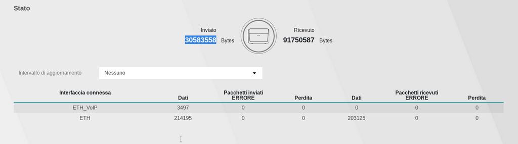 Ormai è quasi un mese che sono attivo con la fibra di Tiscali su OpenFiber, finalmente arrivata nel mio comune (Mezzano di Primiero), e devo dire che sono molto soddisfatto della linea. Volevo informarmi un po' su quanti dati muovo più o meno mensilmente, ma non riesco a capire dove c'è un dato cumulativo sul Zyxel fornito da parte di Tiscali. Sono riuscito ad arrivare alla schermata seguente: