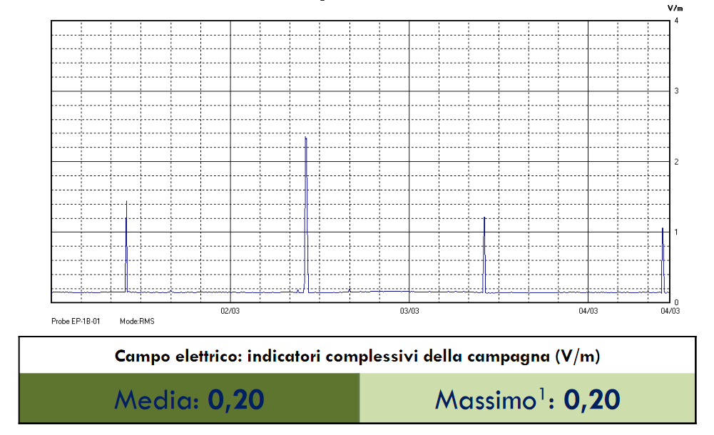 Marzo 2020, scuola elementare. Media 0,20 V/m, 30 volte sotto il limite.