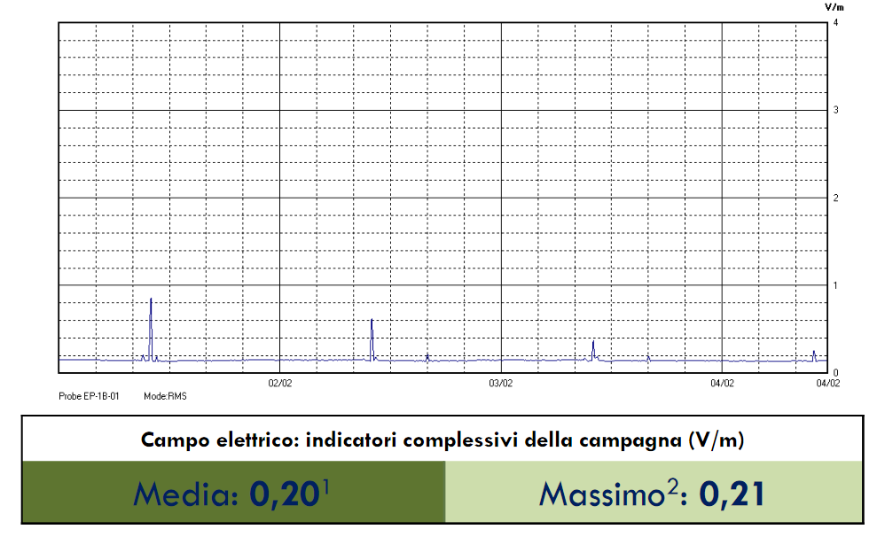 Febbraio 2020, altra scuola elementare. Media 0,20 V/m, come sopra.