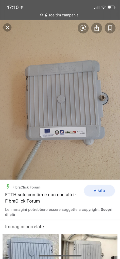 Buonasera volevo capire se ero raggiunto da FTTH facendo la verifica sul sito tim mi esce di no mettendo 126 (il mio numero civico ) B ma se metto solo 126 mi da la possibilità di fare il contratto gigabit. E pure io mi ricordo che hanno passato il cavo in fibra fino a sotto il palazzo ma non vedo nessun roe installato nel palazzo non so se lo hanno installato in qualche cassetta perché giù al palazzo ho una cassetta con scritto sip Telecom. Fuori al palazzo ho questi tipi di roe (allego foto) come posso fare a capire se nel mio palazzo ci sta questo roe.