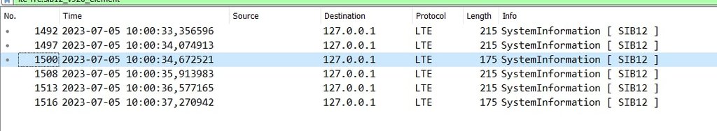 Come da standard il dispositivo ha immediatamente riacquisito il SIB1, che tra le altre cose indica come sono schedulati i vari SIB (i SIB sono praticamente i messaggi di broadcast):