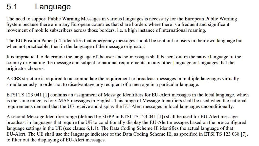 L'id del primo non è assegnato, quindi il device lo ha completamente ignorato (non è stato mostrato all'utente), mentre l'id del secondo rappresenta il livello presidenziale del CMAS. Il livello presidenziale del CMAS corrisponde al livello 1 di EU-Alert (cioè quello che non può essere ignorato).