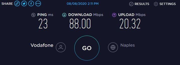 sono utente FTTC Vodafone da anni con la 100/20 di cui allego speedtest recente