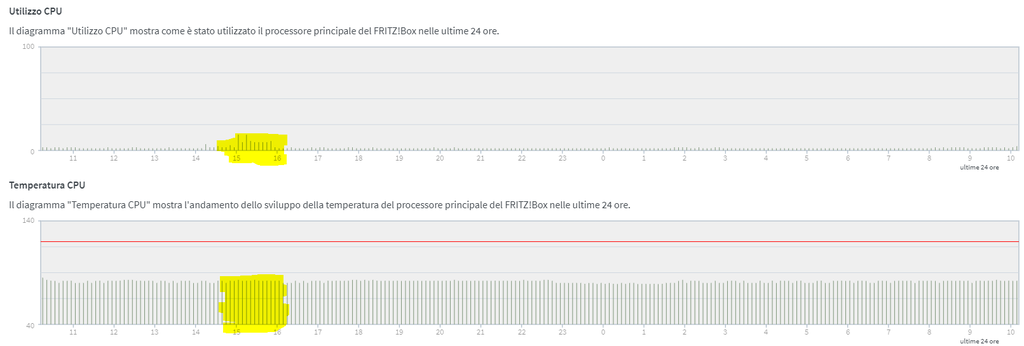 qui ho evidenziato in giallo una fascia orario in cui ho scriptato degli speedtest do ookla via command line. La CPU è lontanissima dal 100%, e anche la temperatura della CPU è ben lontana dalle soglie di attenzione. Se ci sono problemi termici, non riguardano la CPU, ma altre componenti, e comunque non influenza gli speedtest.