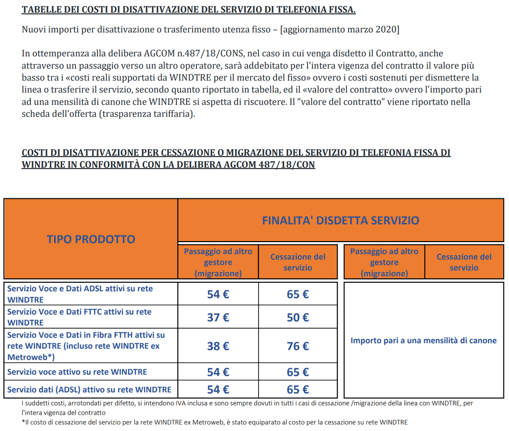 Il costo di cessazione, qualsiasi cosa essa comporti, non deve superare una mensilità, anche se a Wind cessare la linea rame costasse un milione di euro.