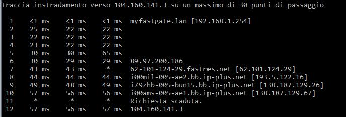 Quello che non capisco è perché i pacchetti, una volta arrivati a Milano (89.97.200.186) , vengano smistati in Veneto (62.101.124.29) ed è proprio qui che c'è un aumento considerevole del ping.